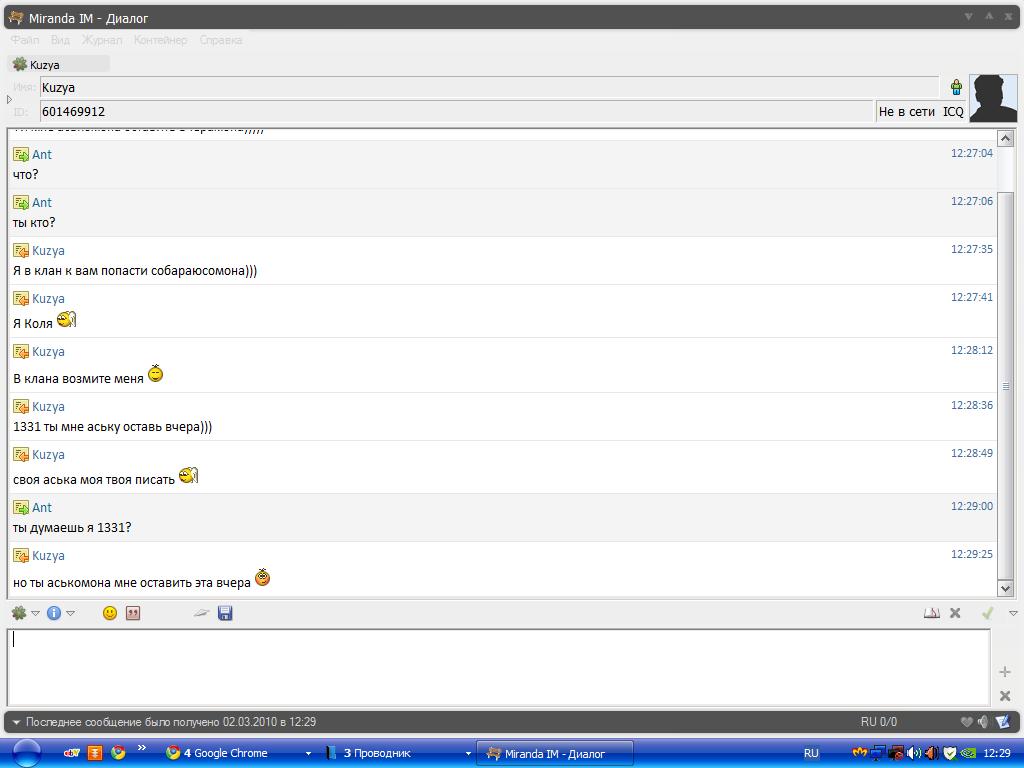 да не он кстати стебался)))) щас норм стал разговаривать)))) ща звяку придет писать) а я в инст ________________________________________________________ Fighting for peace is like fucking for virginity.'